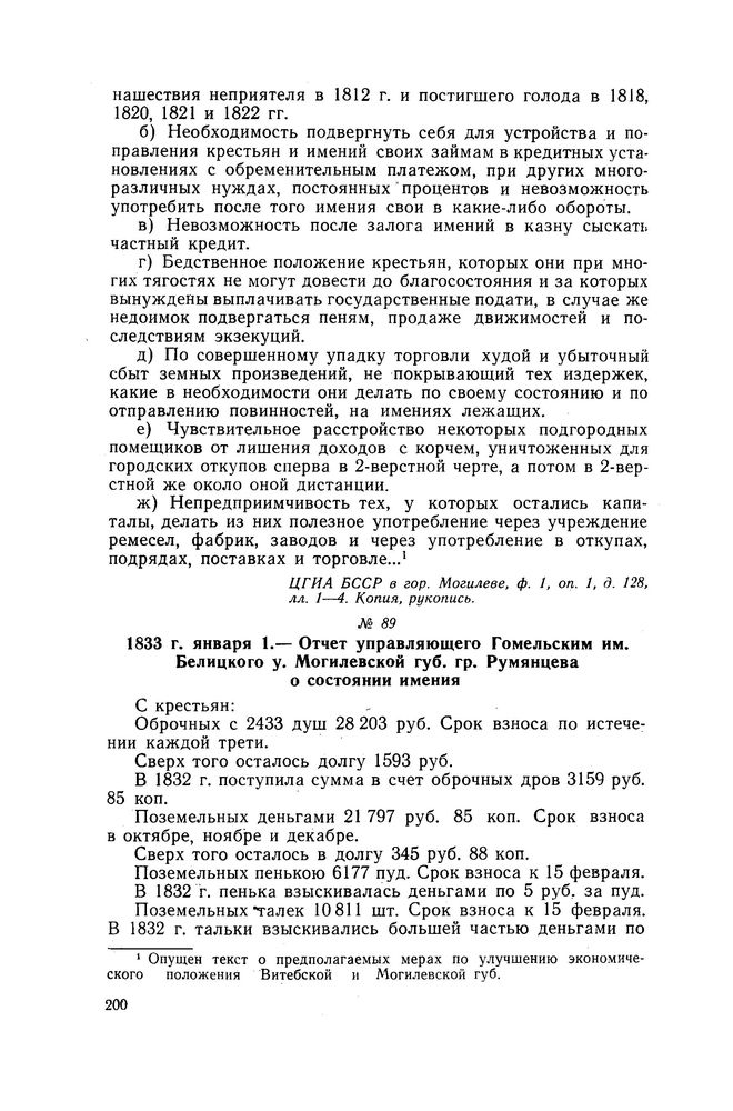 Документы и материалы, освещающие социально-политическую историю и состояние культуры Белоруссии в конце XVIII — первой половине XIX века, собраны в отдельном томе.