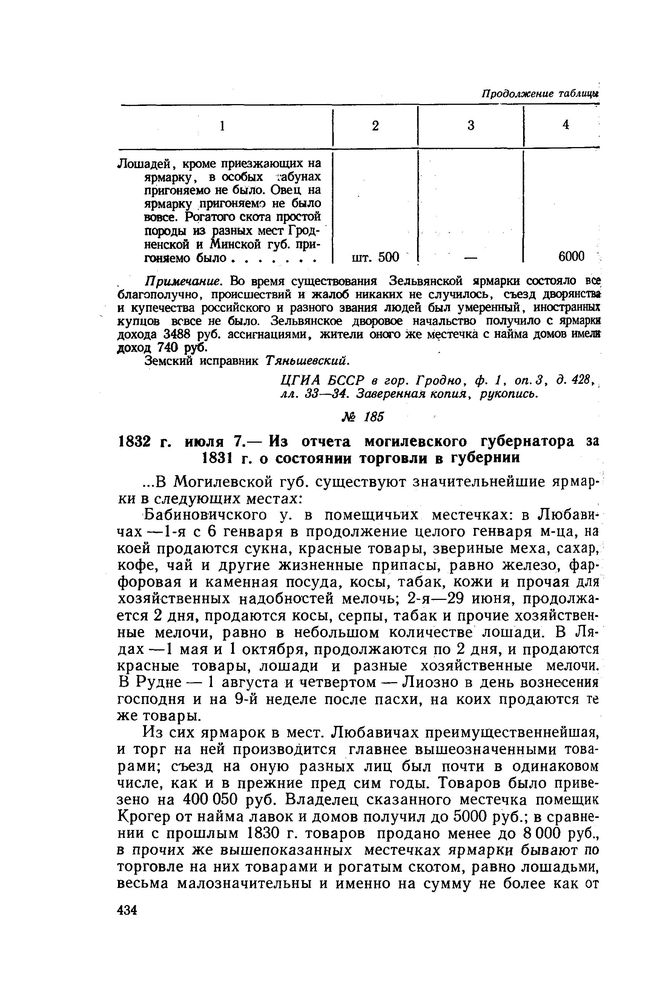 1832 г. июля 7. — Из отчета Могилевского губернатора за 1831 г. о состоянии торговли в губернии