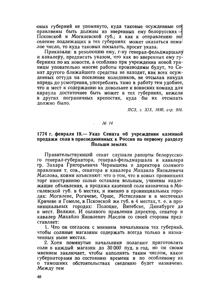 1774 г. февраля 19.— Указ Сената об учреждении казенной продажи соли в присоединенных к России по первому разделу Польши землях