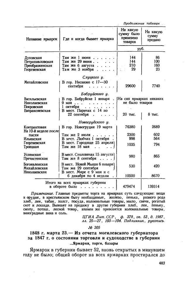 1848 г. марта 23. — Из отчета Могилевского губернатора за 1847 г. о состоянии торговли и судоходстве в губернии